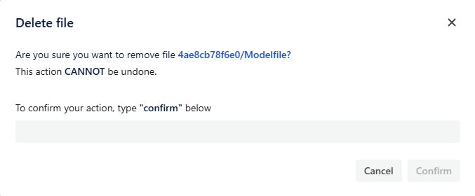 ステップ3: 確認ダイアログが表示されます。削除を確認するには、テキストボックスに「delete」と入力してください。テキストが入力されると、削除ボタンが有効になります。