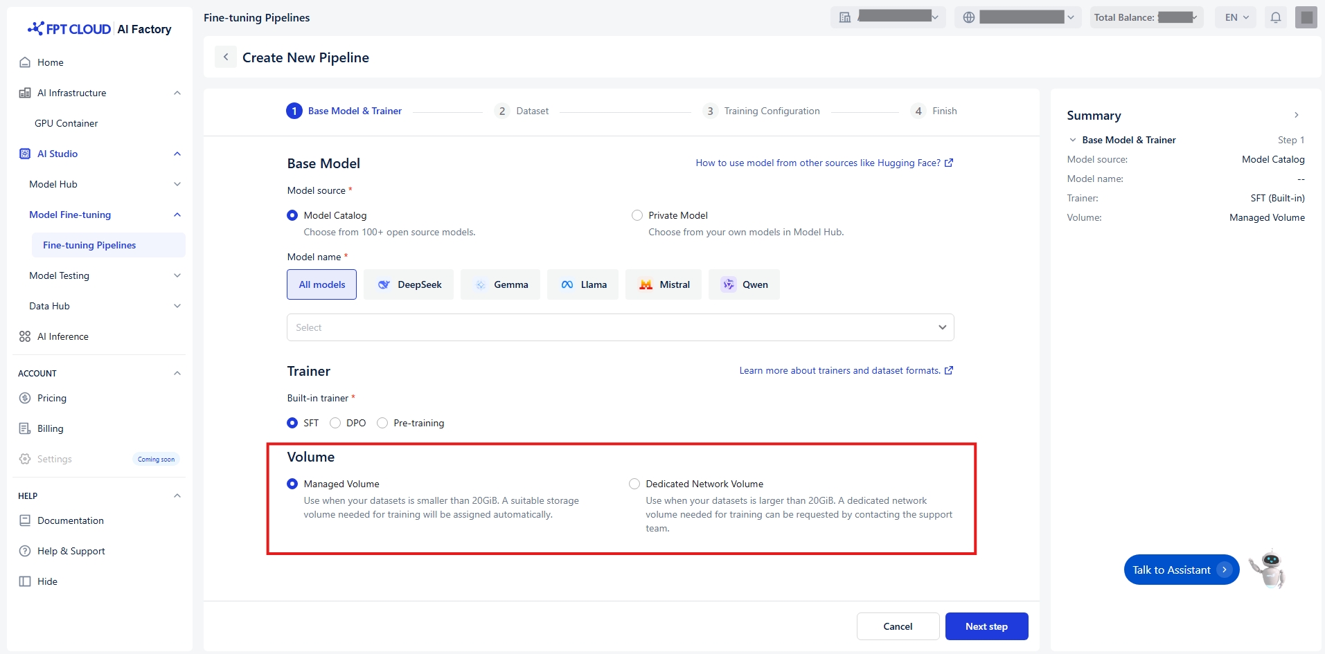 適切なボリュームタイプを選択することで、モデルの微調整中に最適なパフォーマンスとリソース割り当てを確保 できます