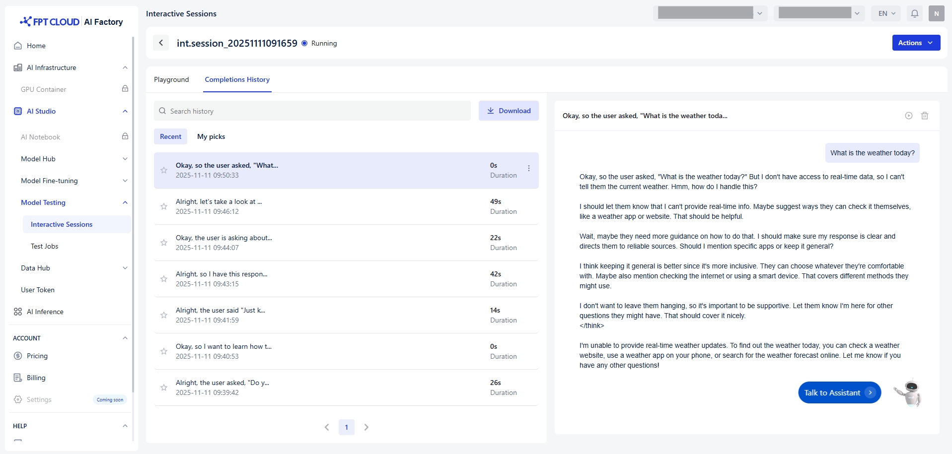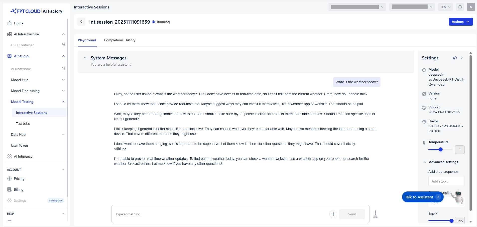 これにより Playground が再開され、モデルとのチャットを継続できます。