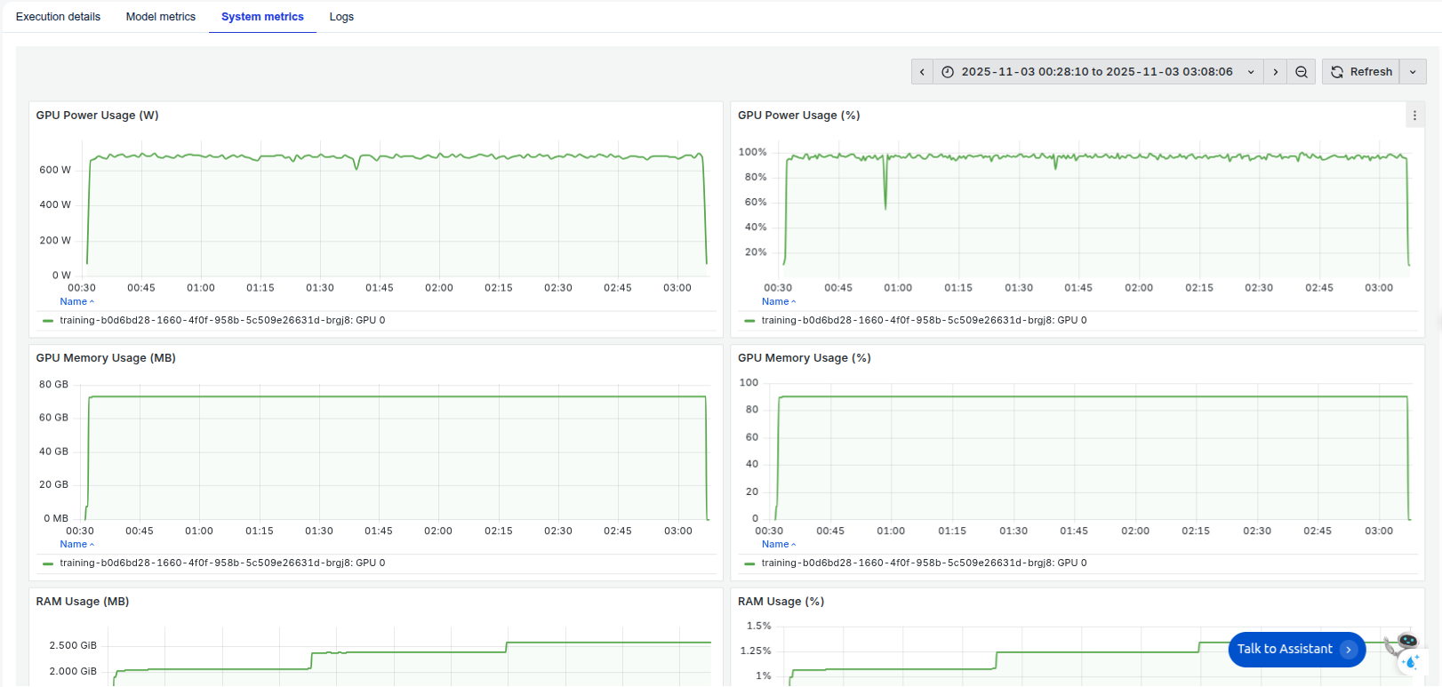 簡略化のため、表示されている費用にはモデルダウンロード、データダウンロード、データトークン化、モデルハブへのデータプッシュに要する時間も含まれています。実際の運用ではGPU使用時間のみ課金対象となるため、実際の費用は表示値より低くなります。