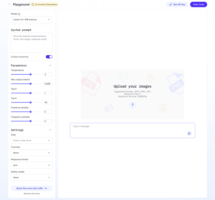 AIマーケットプレイス プレイグラウンドでは、コーディングなしでAIモデルをテスト・操作できま す。テキスト生成、テキスト読み上げ、音声認識、視覚タスク、埋め込みなどが含まれます。