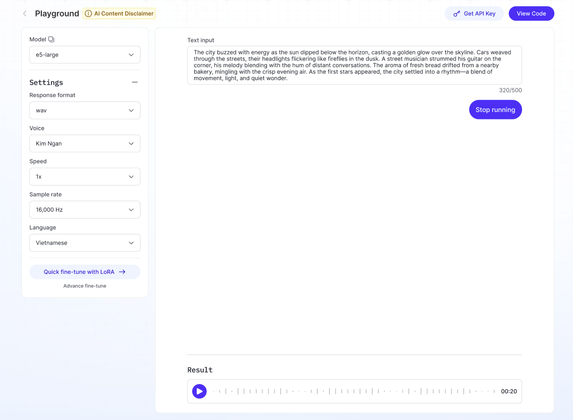 実行をクリック →システムが音声ファイルを生成します。再生またはダウンロードが可能です 。