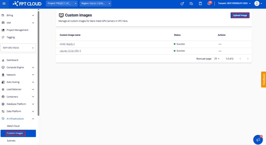 アカウントからカスタムイメージを削除しても、そのイメージから作成したサーバーは削除されません。ベアメタルGPUサーバーはFPTカスタマーポータルから別途破棄できます。