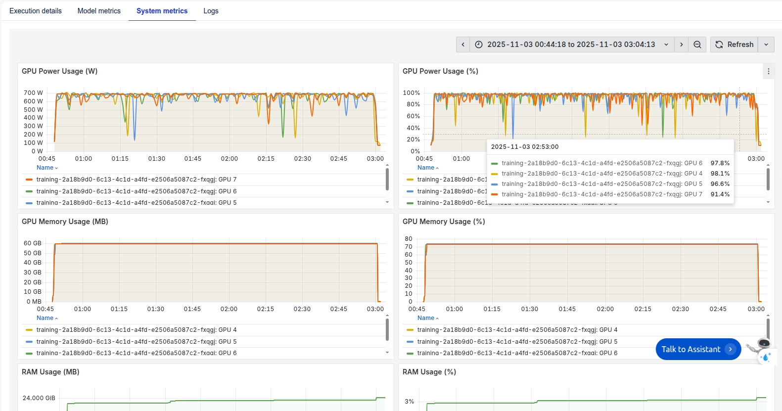 In addition, we can observe the system-related metrics in the System metrics section.