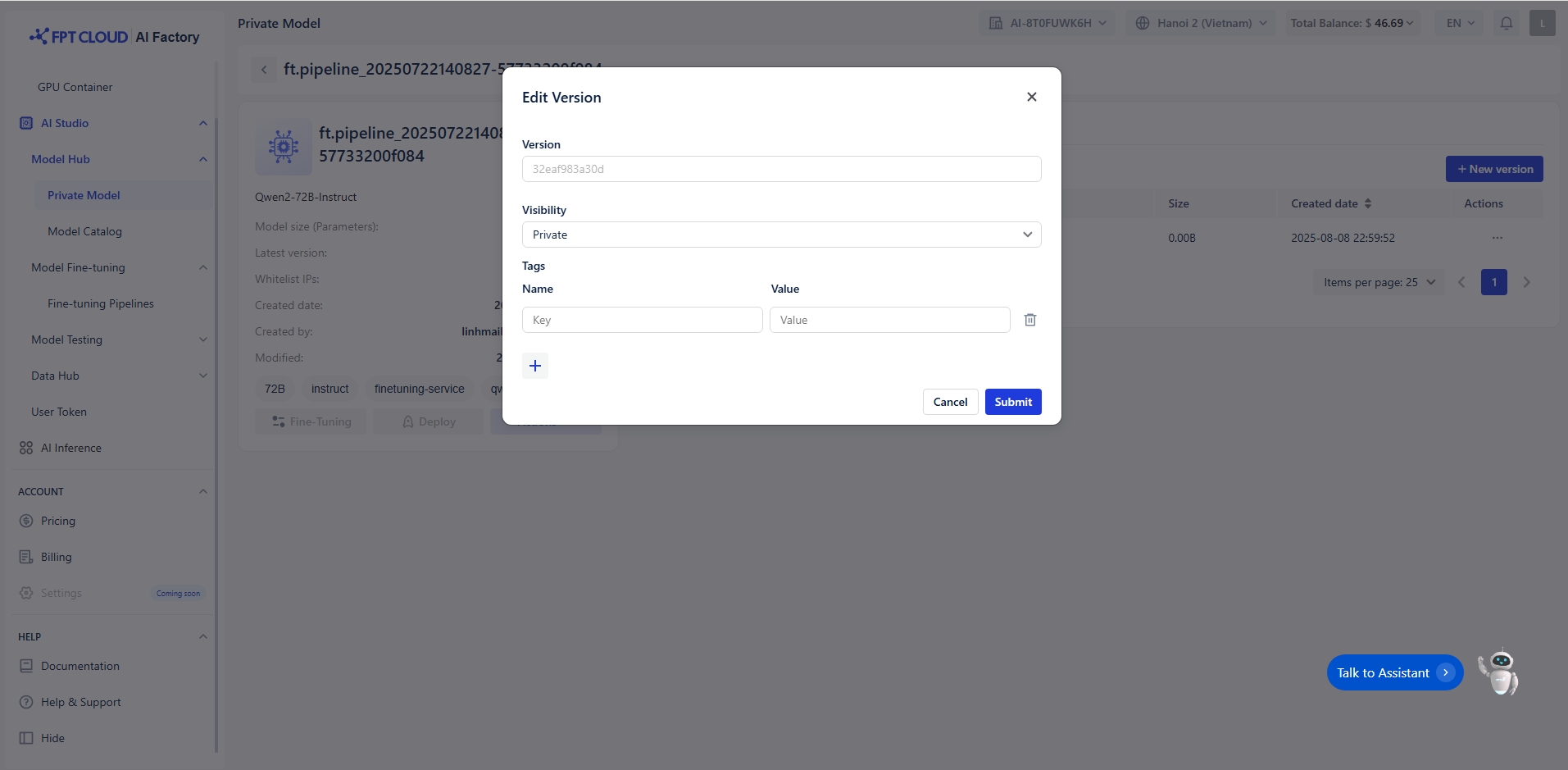Step 3: The system will navigate to the Edit version screen, where you can make changes.