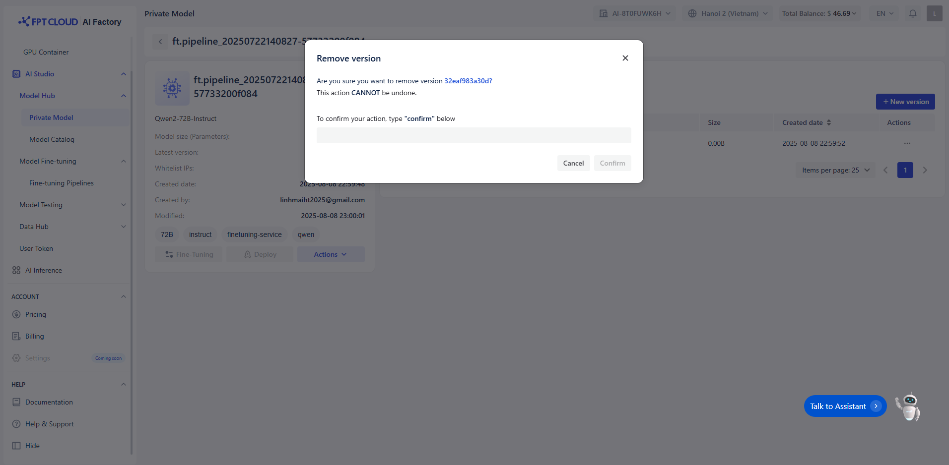 Step 3: A confirmation dialog will appear. To confirm deletion, type "confirm" into the text box. The Confirm button will be enabled once the text is entered.