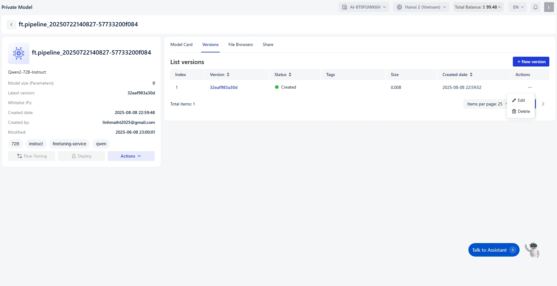 Edit Model allows users to update the details of an existing private model, including its metadata, configuration, and access settings.