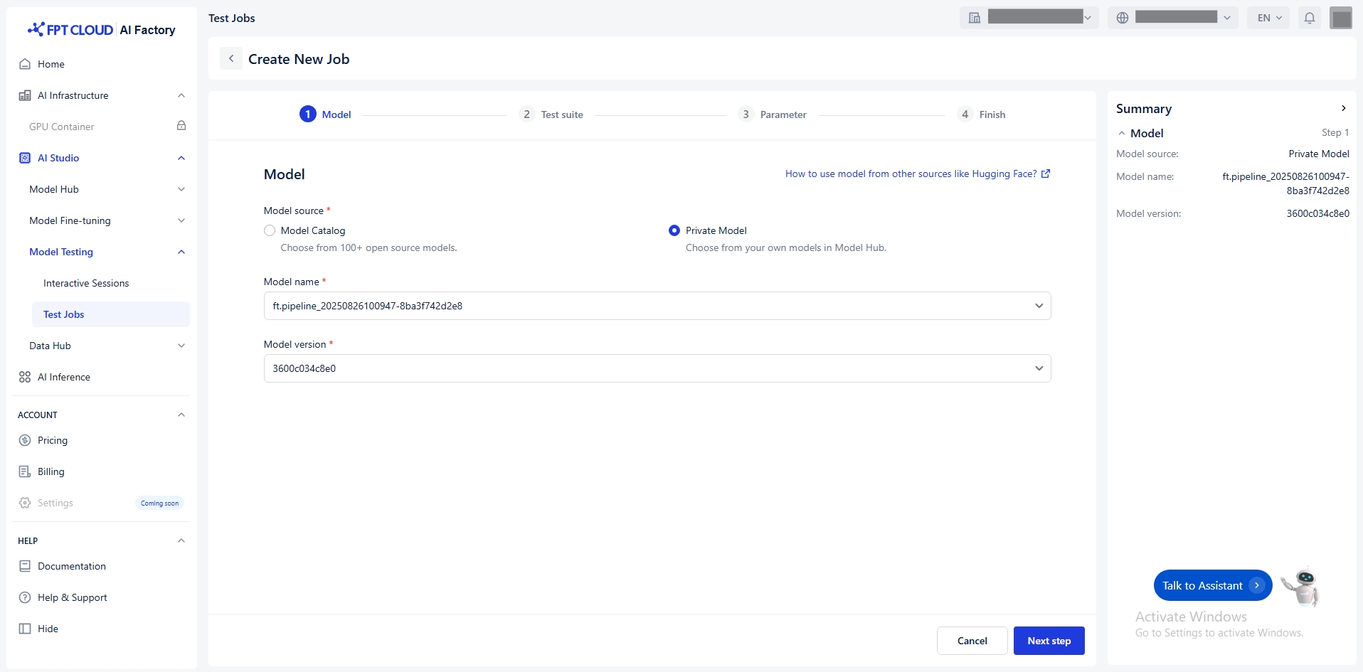 Finally, you must enter a unique name job (e.g., testj_20250919145022) that satisfies the following conditions: