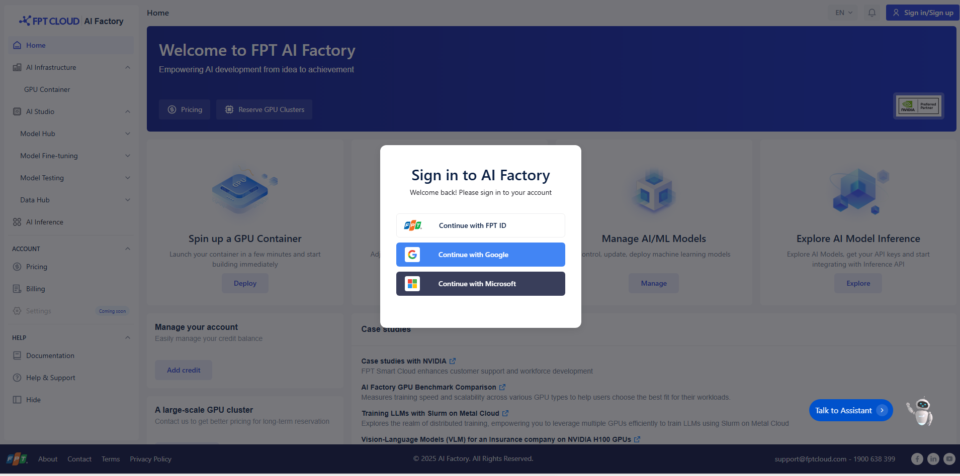 Navigate to FPT AI Factory in your web browser (https://ai.fptcloud.com/)