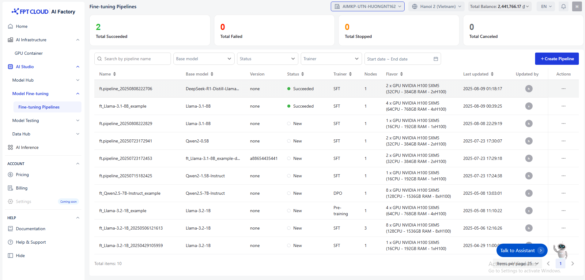To meet this growing demand, Model Fine-tuning is built by FPT Smart Cloud to be user-friendly, enabling AI customization through a simple interface on the FPT AI Factory Portal. Users can upload their dataset, configure training hyperparameters, and set up infrastructure - all within a few clicks.