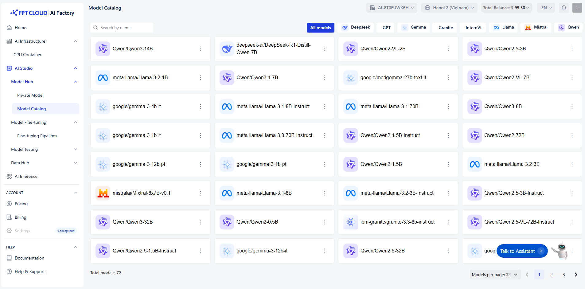 Use the filter tabs (e.g., DeepSeek, GPT, Qwen, etc.) to view models from a specific family.