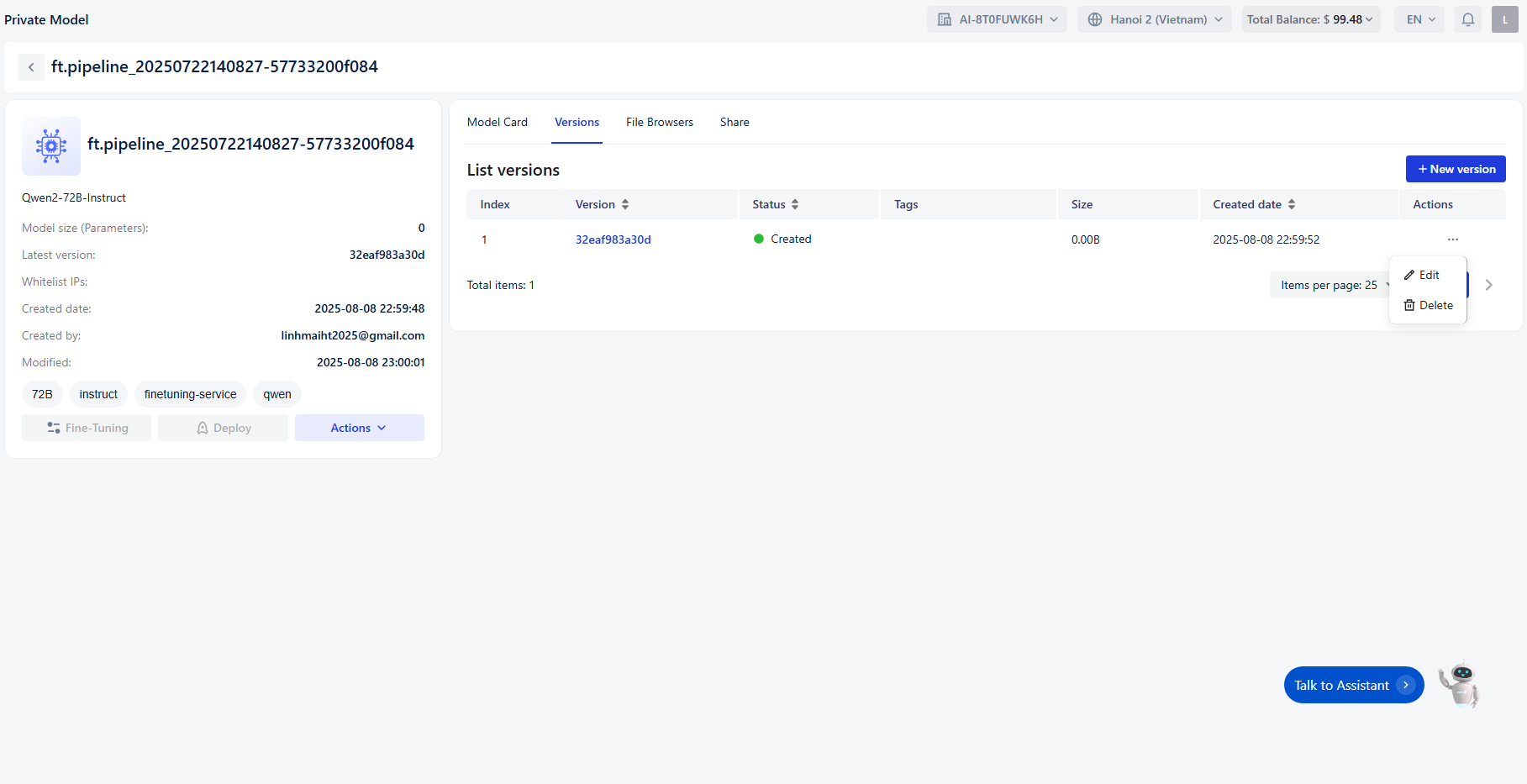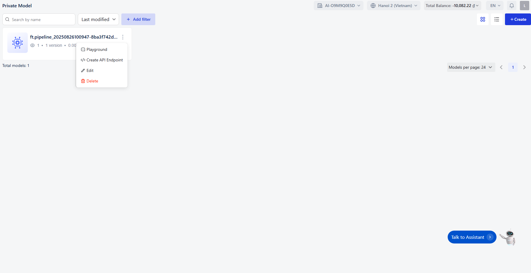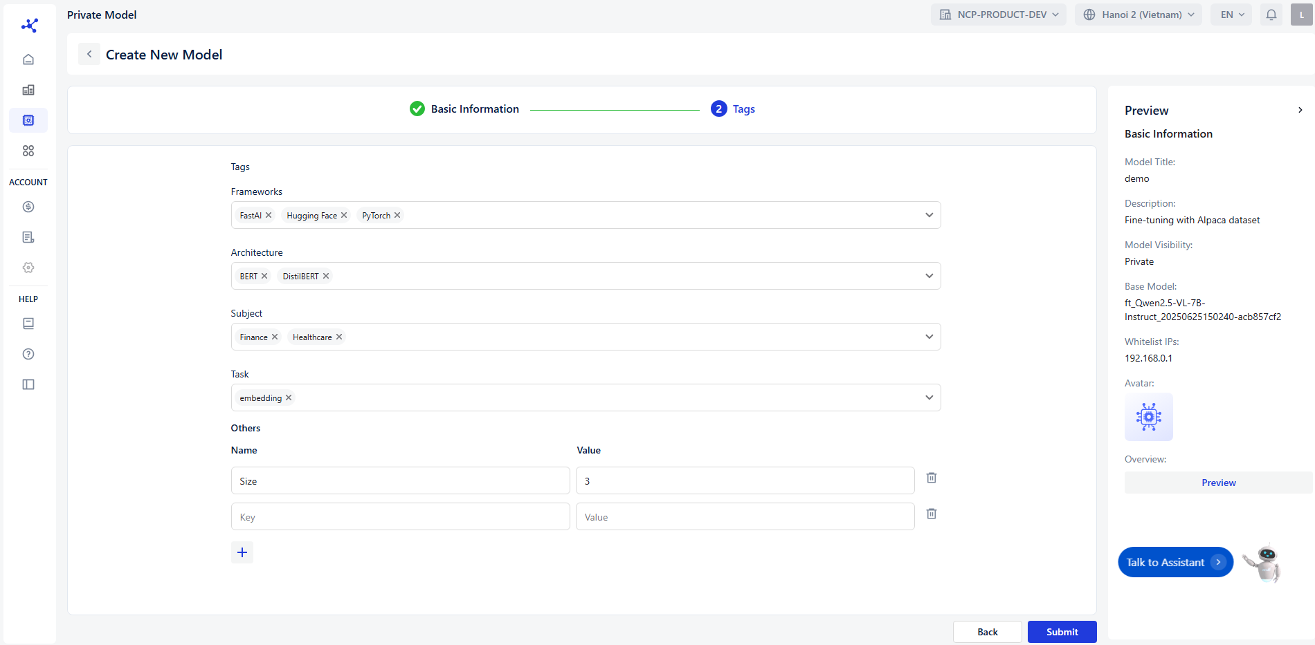 Edit Model allows users to update the details of an existing private model, including its metadata, configuration, and access settings.
