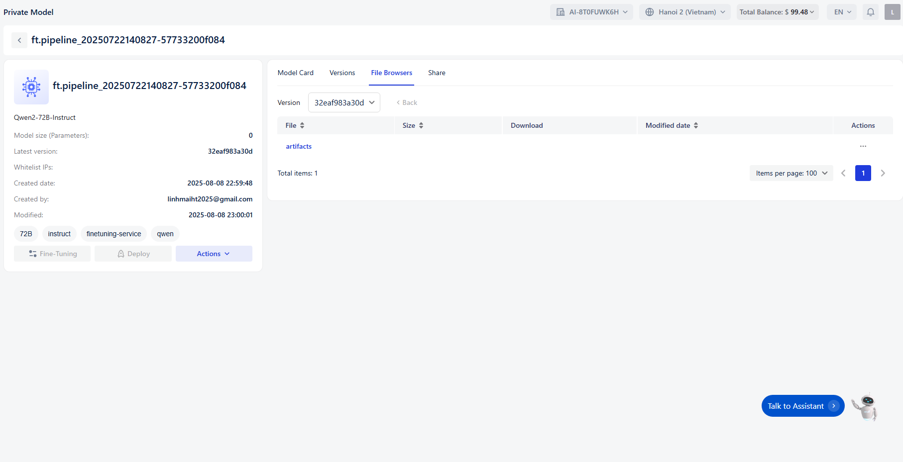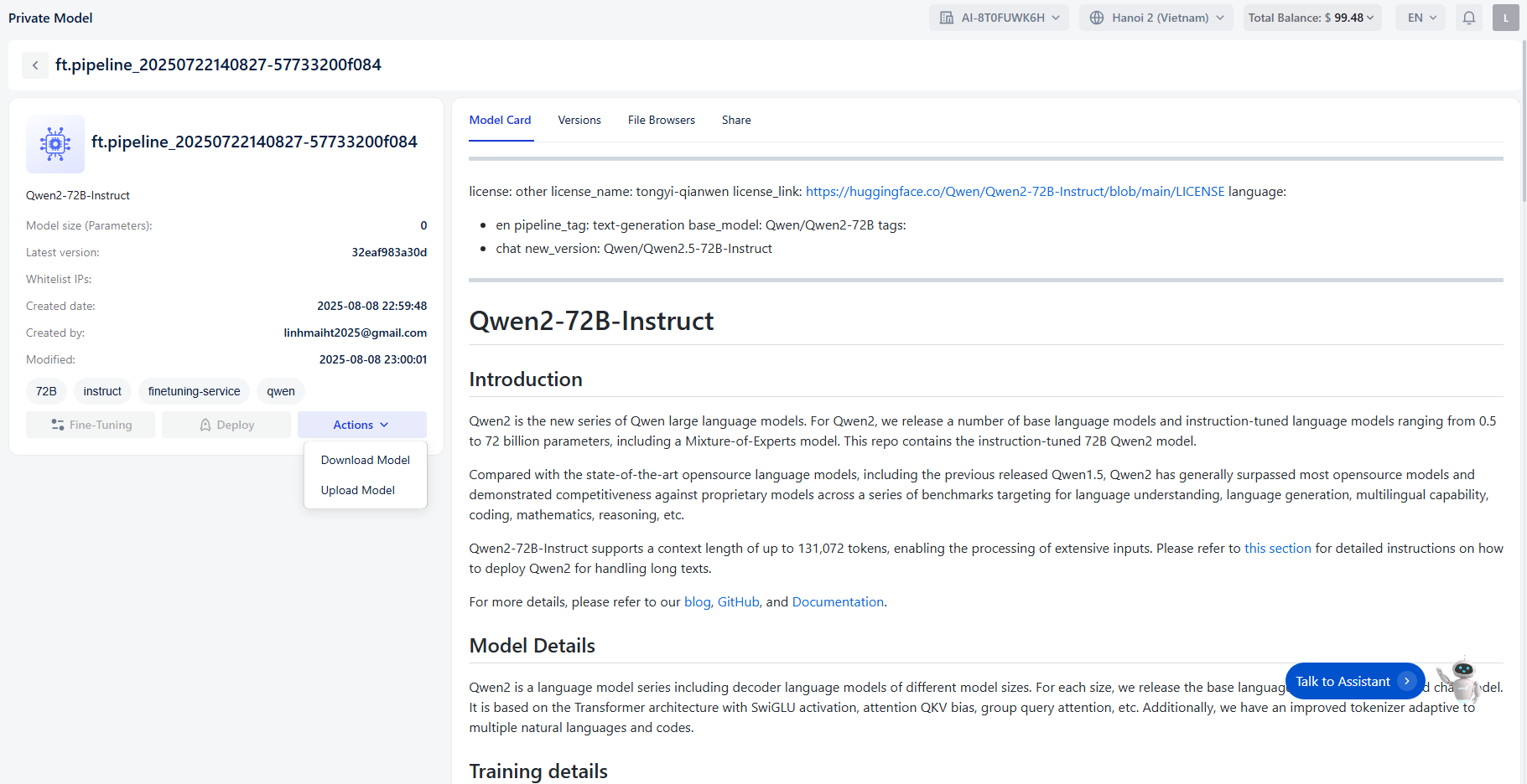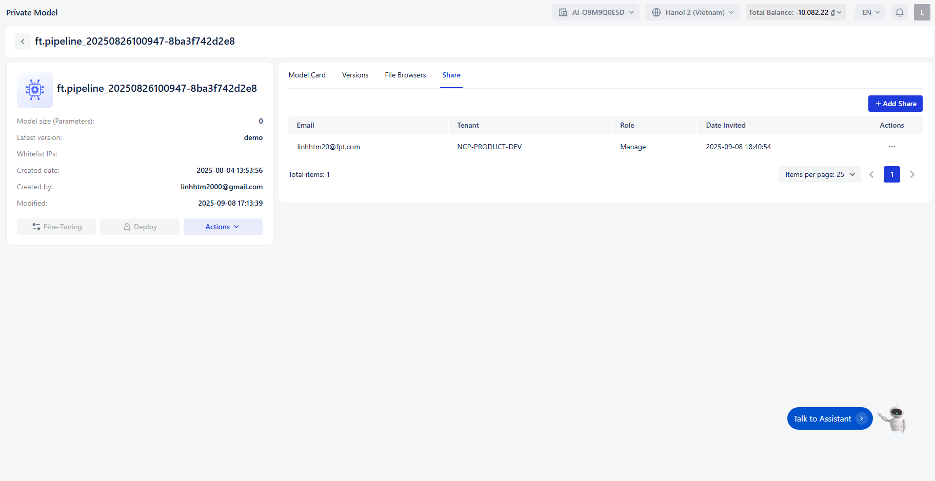 Edit Model allows users to update the details of an existing private model, including its metadata, configuration, and access settings.