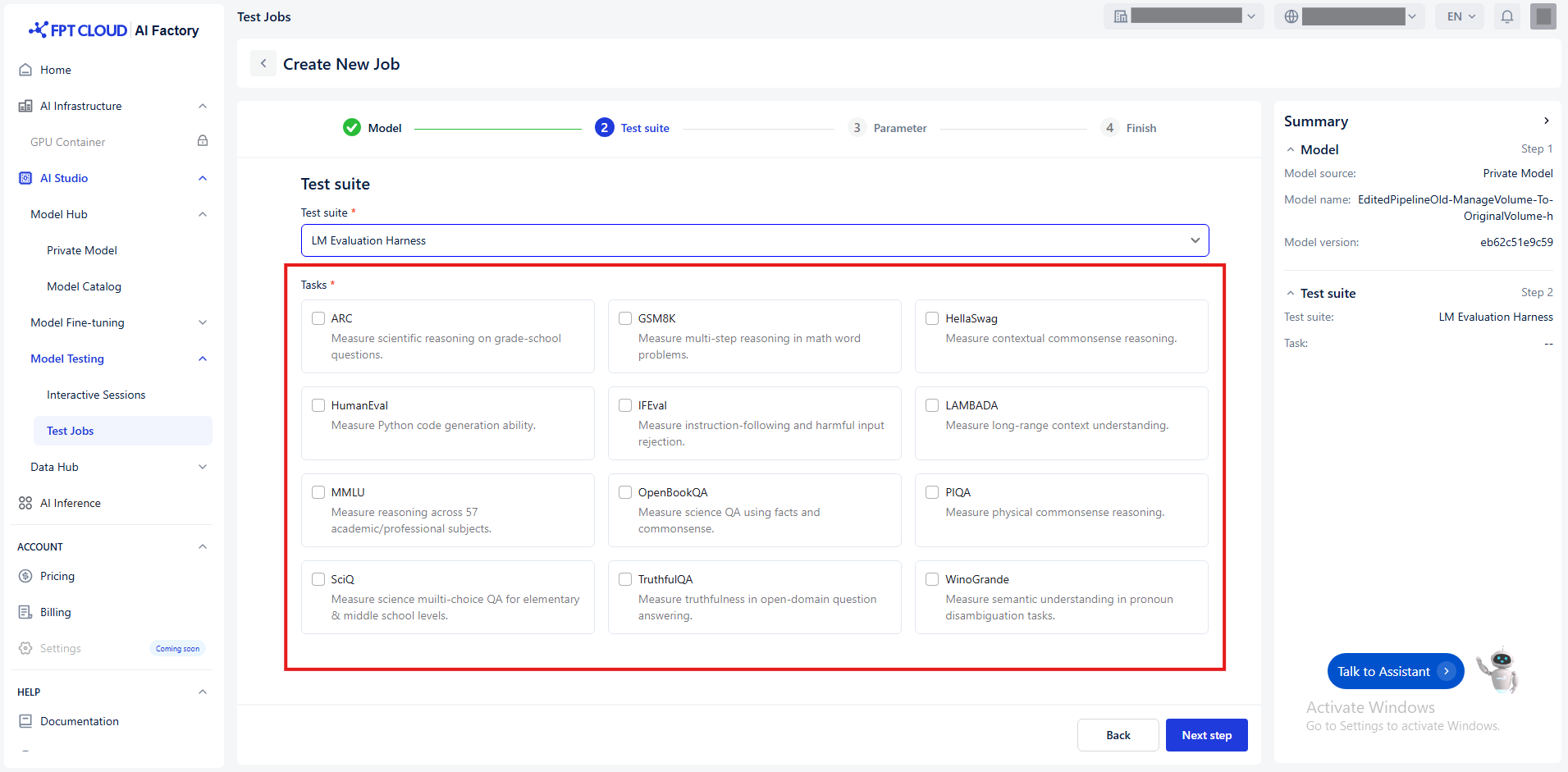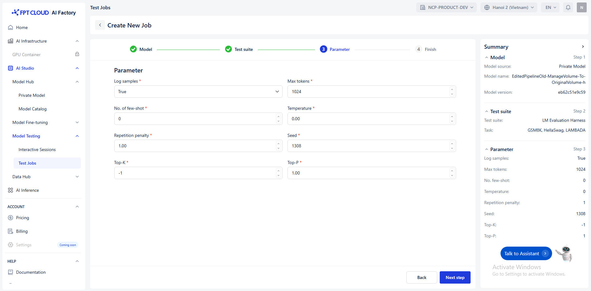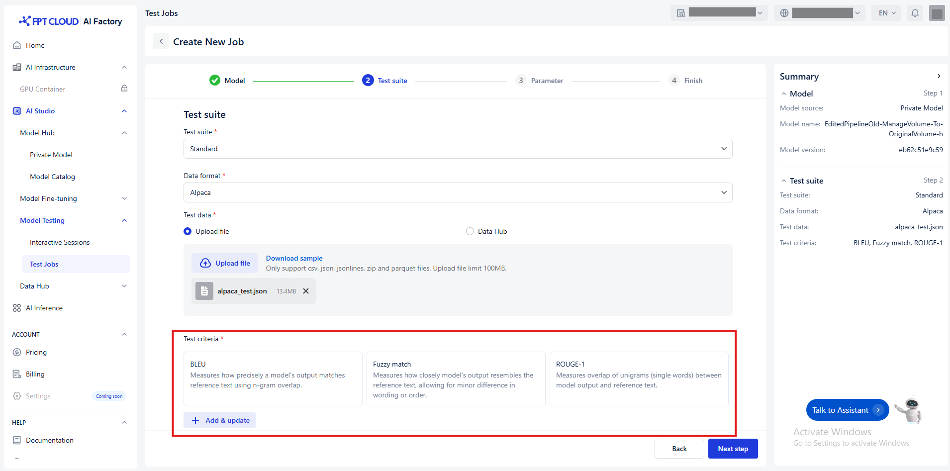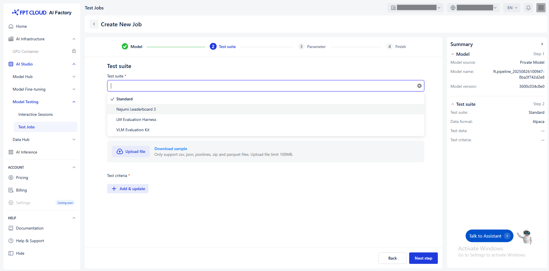 Finally, you must enter a unique name job (e.g., testj_20250919145022) that satisfies the following conditions: